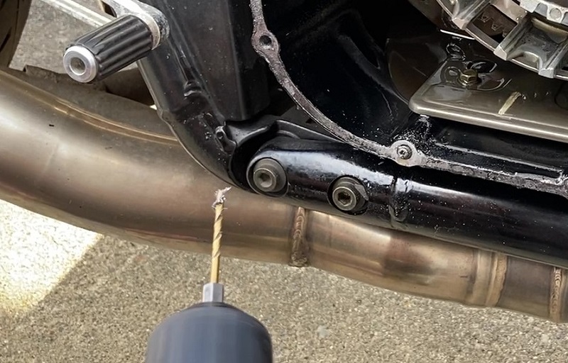 そんなに強く押したつもりはなかったのですが、まさか折れるとは思いませんでした。この金属用ドリル刃は、セットで安く購入したもの。別途単品で購入した他の刃と比べて切れ味はあまり良くないなとは思っていたのですが、強度面でも良くなかったようです。いずれにしてもケガはなく、バイクにも傷がつかなくてよかったと思います。