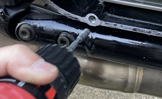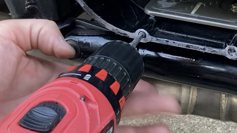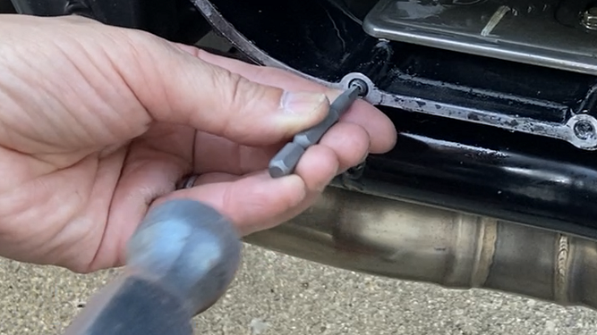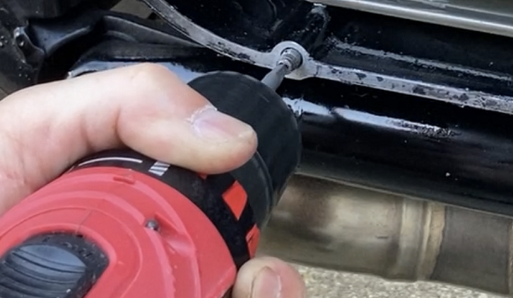 ドリルドライバーのチャックにボルト抜きを締め込み、ゆっくりと回します。
