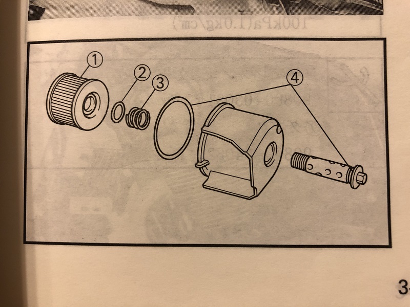 フィルターケースにも大きいOリングがはまっていますので、これも外します。展開図ではグリーズを塗布となっておりますが、どちらもエンジンオイルを塗布して取り付けています。